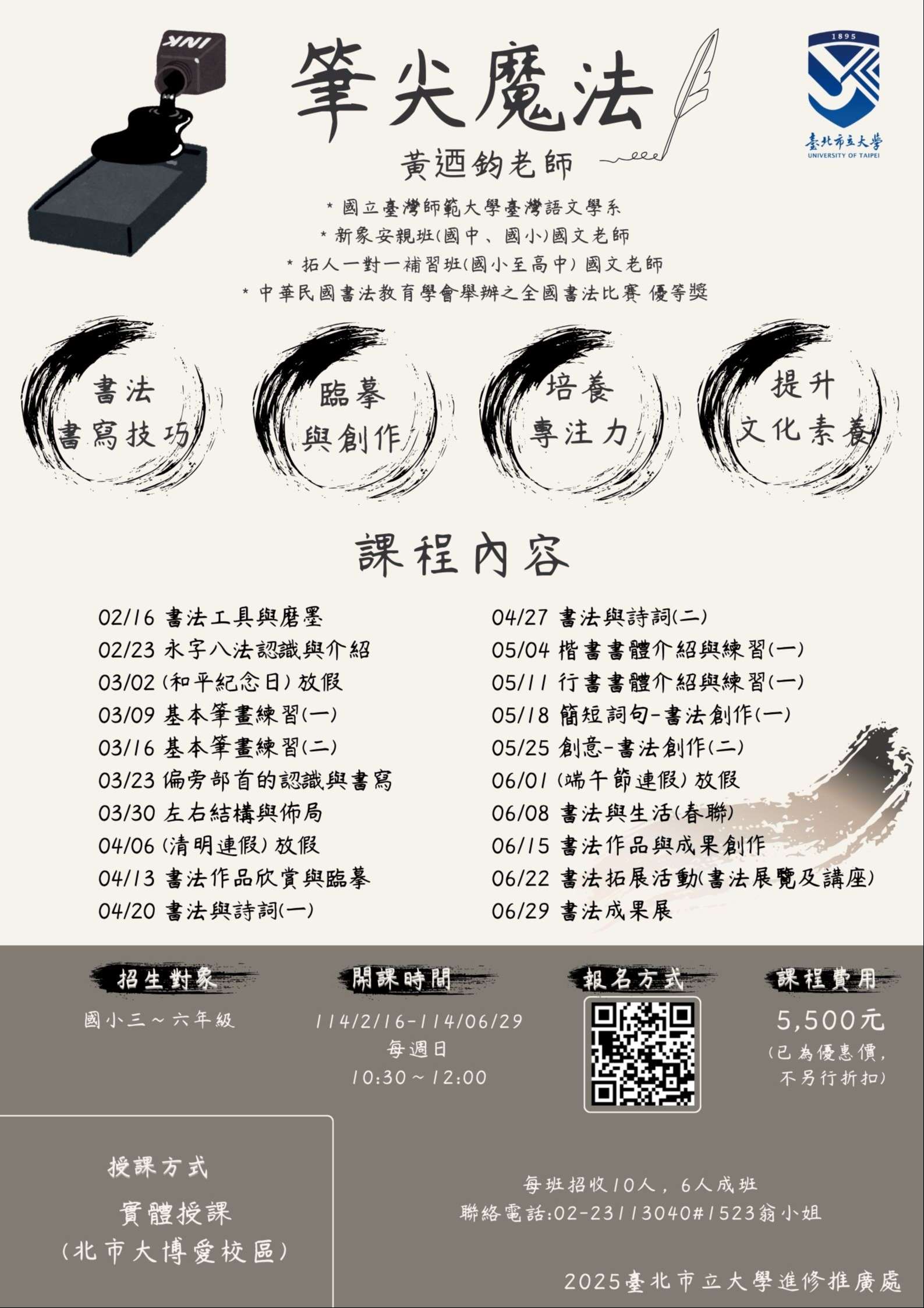 六、檢附課程招生海報1份,如有課程相關疑問,請逕洽本案承辦人翁小姐(02-23113040轉分機1523)。