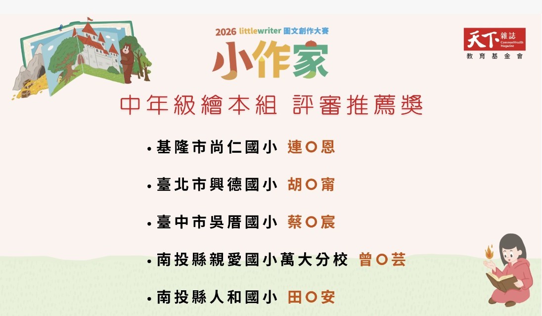🎉恭賀 402 胡瑀甯《你好,我來自小小的》獲得 中年級繪本組 評審推薦獎。