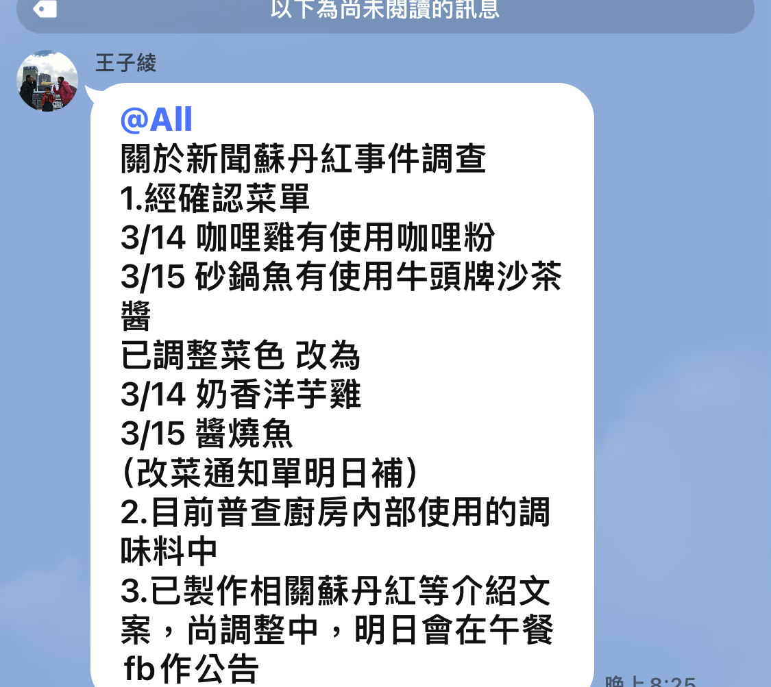 因應近日調料新聞事件,本校午餐自主查核後,暫時停止使用咖哩粉、辣椒粉等調料,故三月部分菜單進行調整,請參考。待正式通知到校後,公告周知。