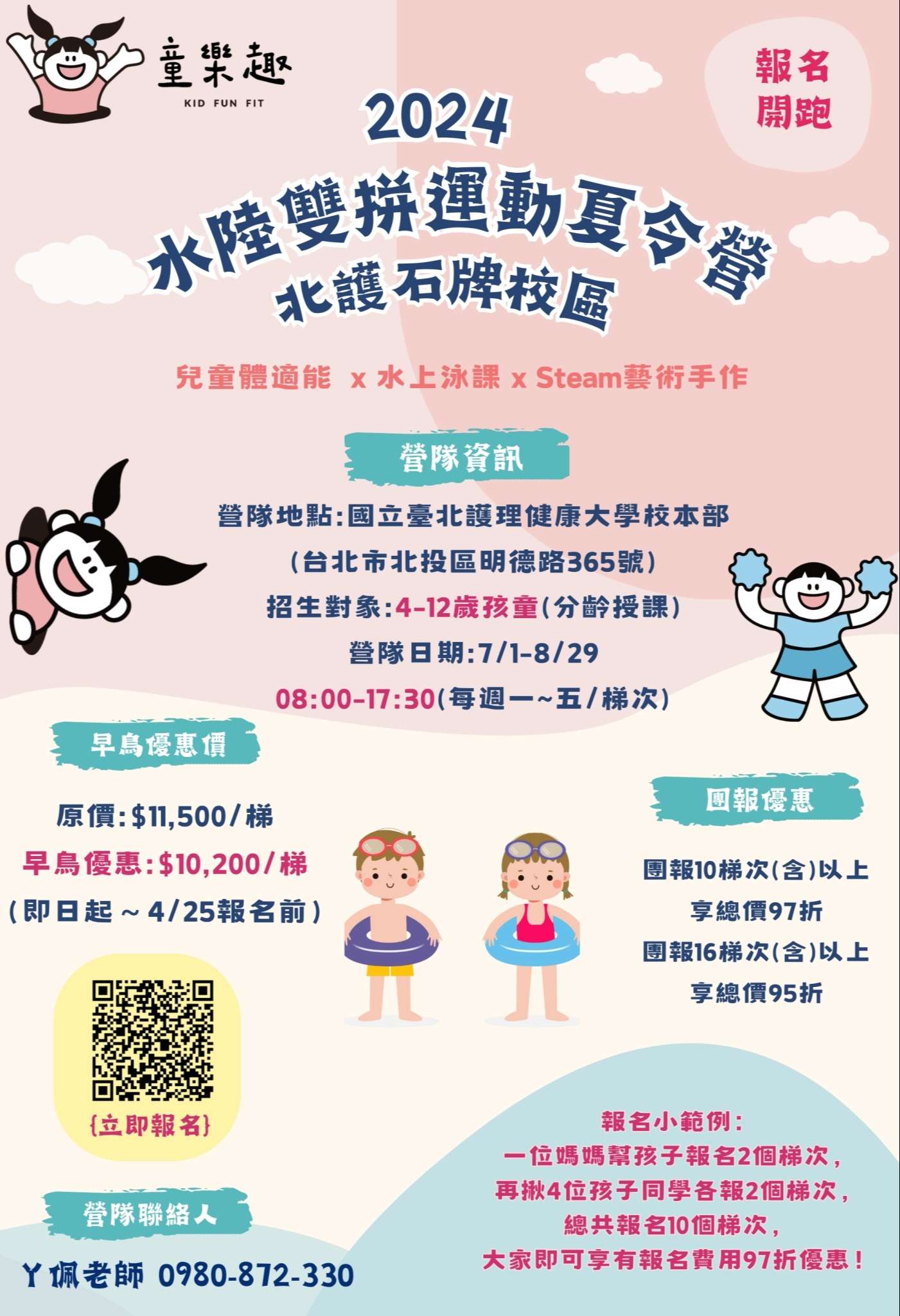 臺北護理健康大學「2024水陸雙拼運動夏令營」開課訊息