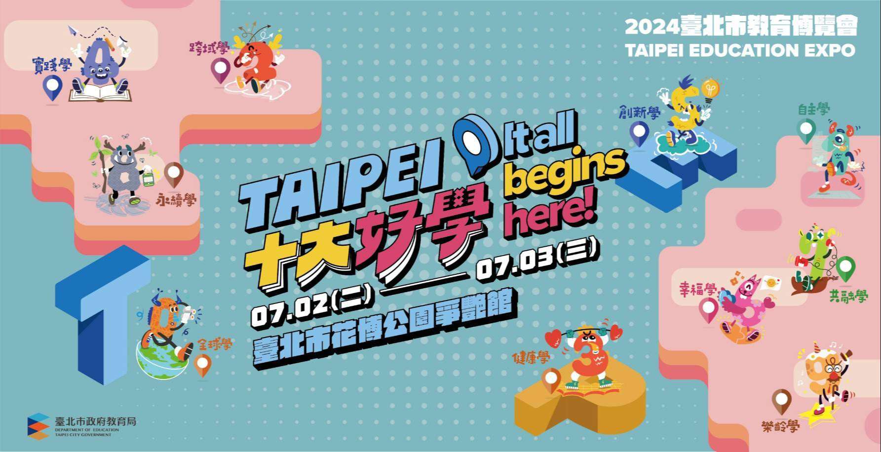 臺北市教育局規劃於113年7月2日(星期二)至7月3日(星期三)上午9時至下午4時假臺北市花博公園爭豔館舉辦「2024臺北市教育博覽會」,於現場展出本市十大好學教育政策,並於現場提供特色課程與活動,邀請師生一同體驗。