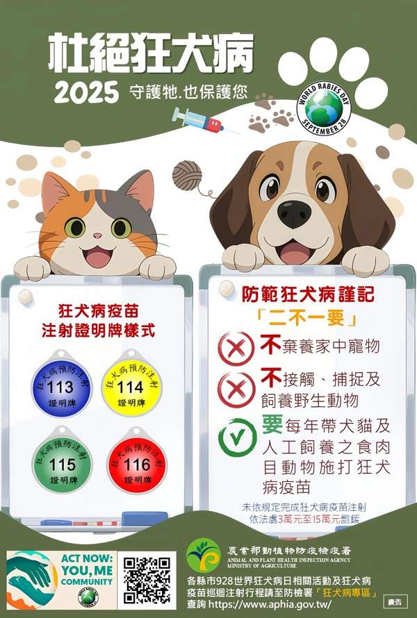 轉知農業部動植物防疫檢疫署 「杜絕狂犬病-守護牠.也保護您」海報