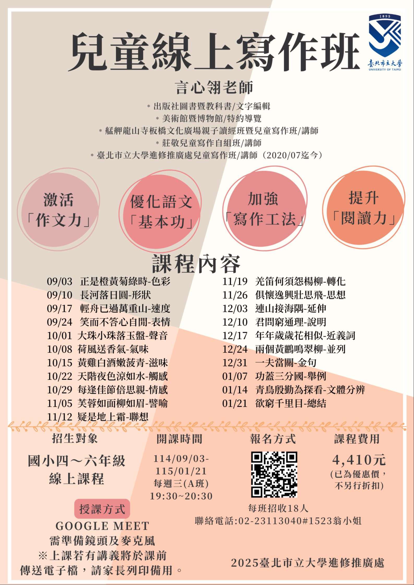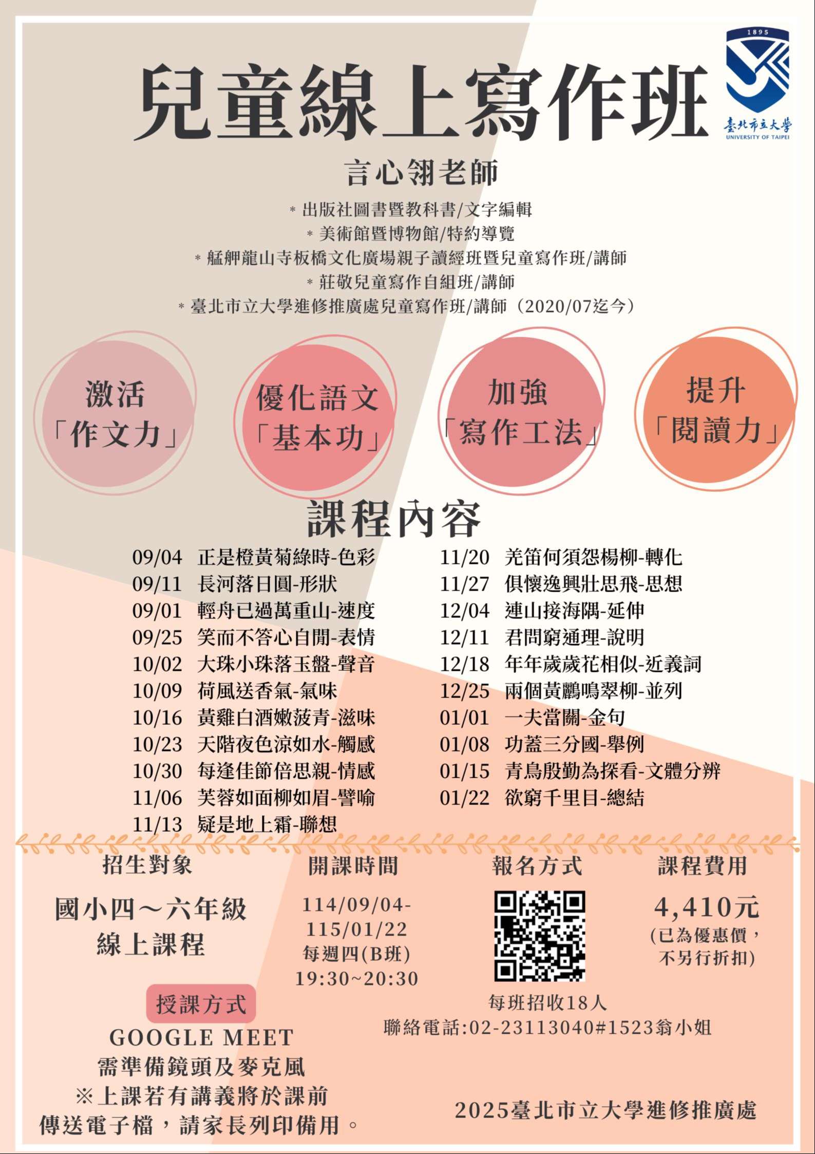 一、活動業公告於本校博愛校區進修推廣處網站 (https://cee.utaipei.edu.tw/),課程詳細資訊請至網 站查詢。